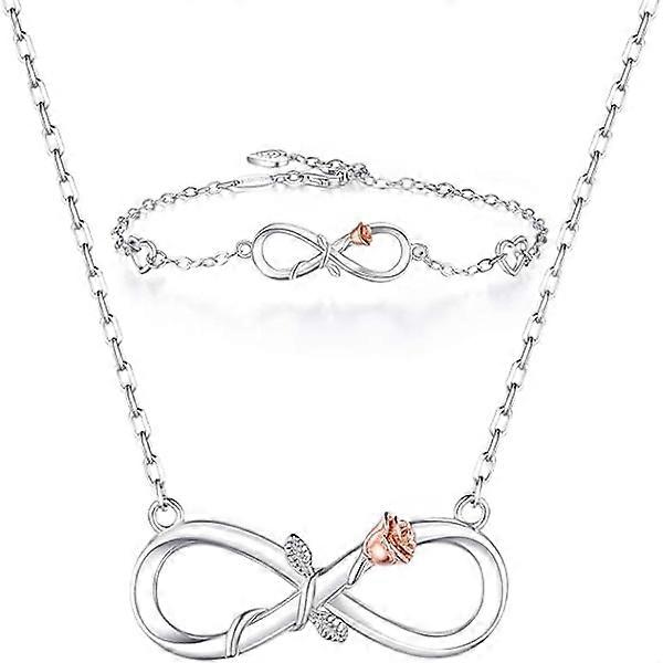 Jewelry Set for Women 925 Sterling Silver Rose Gold Infinity Heart Necklace and Bracelet Set Birthday Wedding
