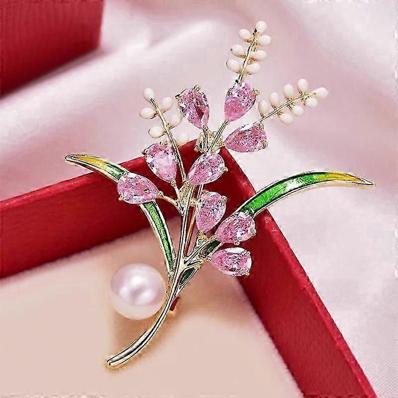 Shiny Crystal Zircon Flower Pearl Brooch For Women Pink Purple Peach Blossom Red Rose Rhinestone Corsage Pins Party Jewelry Gift 2025