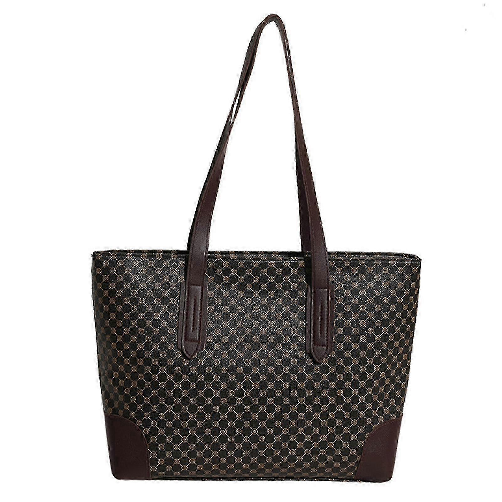 Women Shoulder Bag Large Capacity Special Printing PU Leather Handbag for Travel Use Brown Free Size