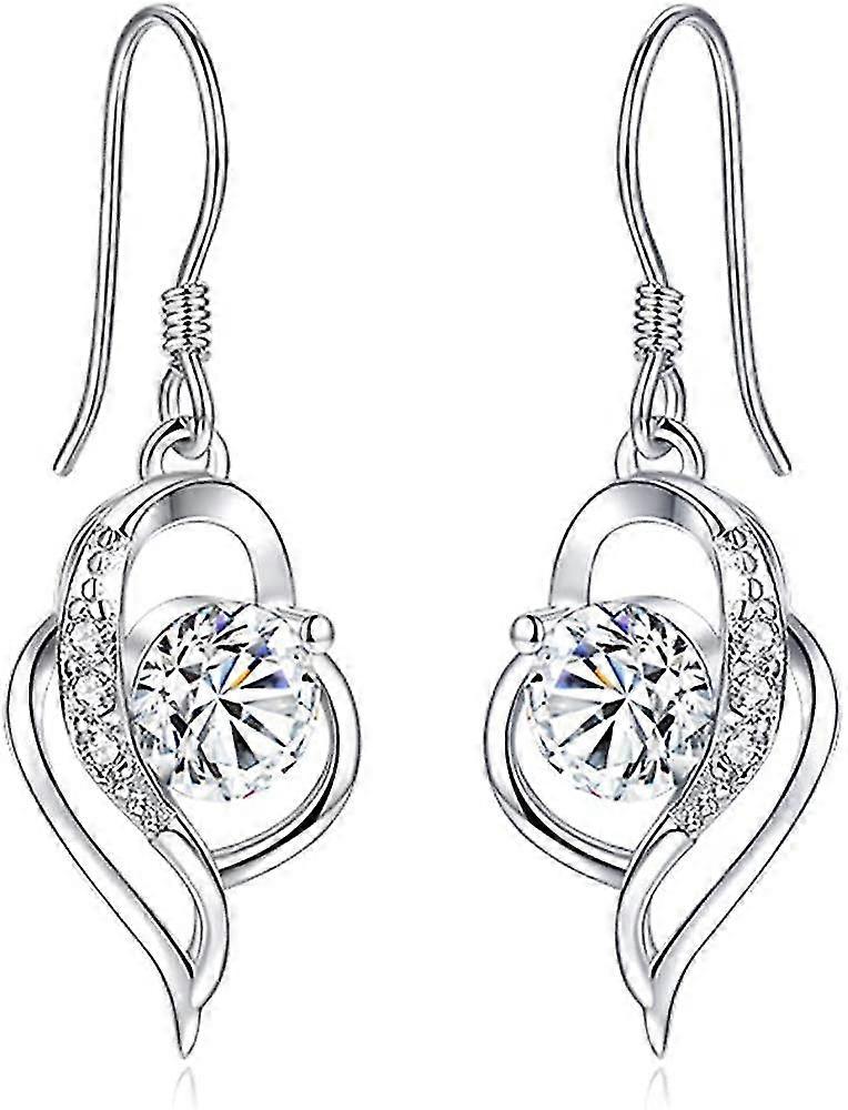 Silver Dangle Drop Earrings For Women, 925 Sterling Heart Earrings, With White Aaa Cubic Zirconia, Hypoallergenic Jewellery For Sensitive Ears, Suitab
