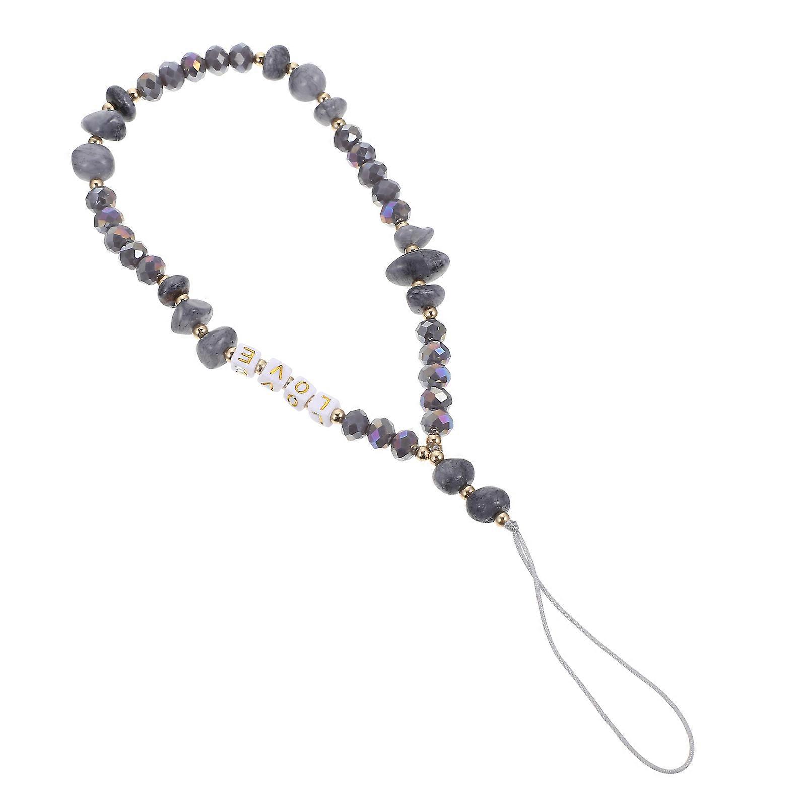 Stylish Beaded Mobile Phone Lanyard for Women – Easy Installation, Loss Prevention, Keychain Design, Grey