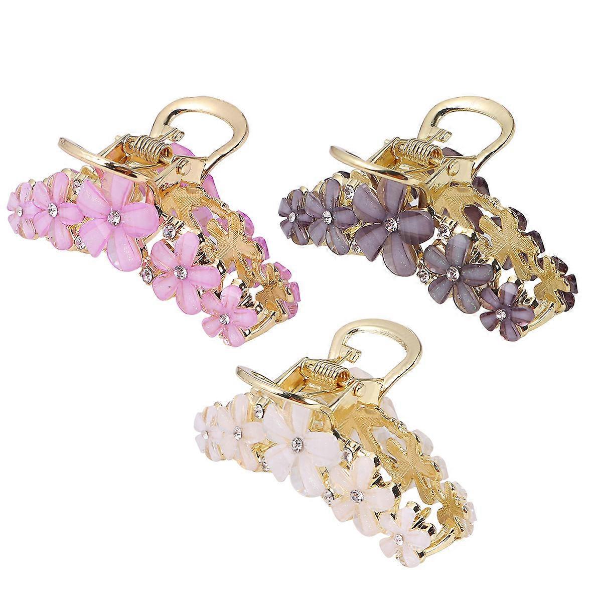 3pcs Stylish Flower Rhinestone Hair Claw Clips for Women – Lightweight, Durable Korean Style Hair Accessories for Daily Wear