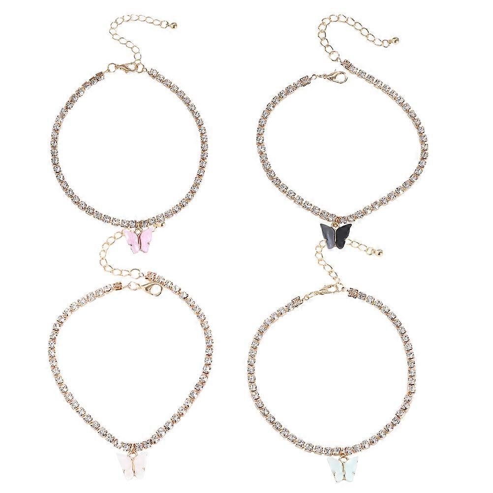 4pcs Stylish Rhinestone Anklets for Women, Lightweight & Comfortable Fashion Foot Jewelry with Pink Green Design, Beach Ankle Chains