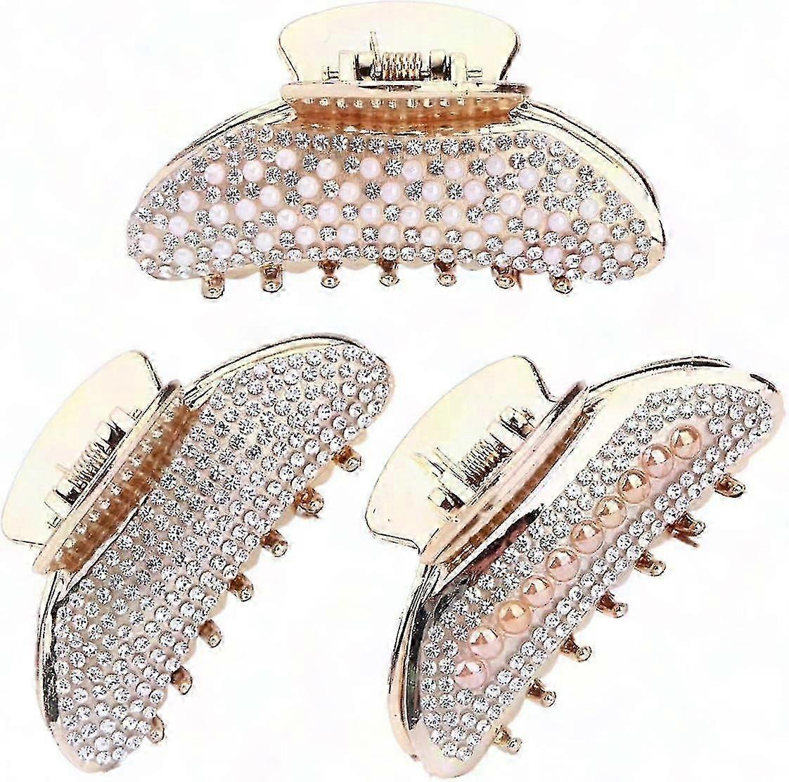 3-Pack Sparkling Rhinestone Hair Clips for Women - Non-Slip Octopus Claw Jaw Accessories