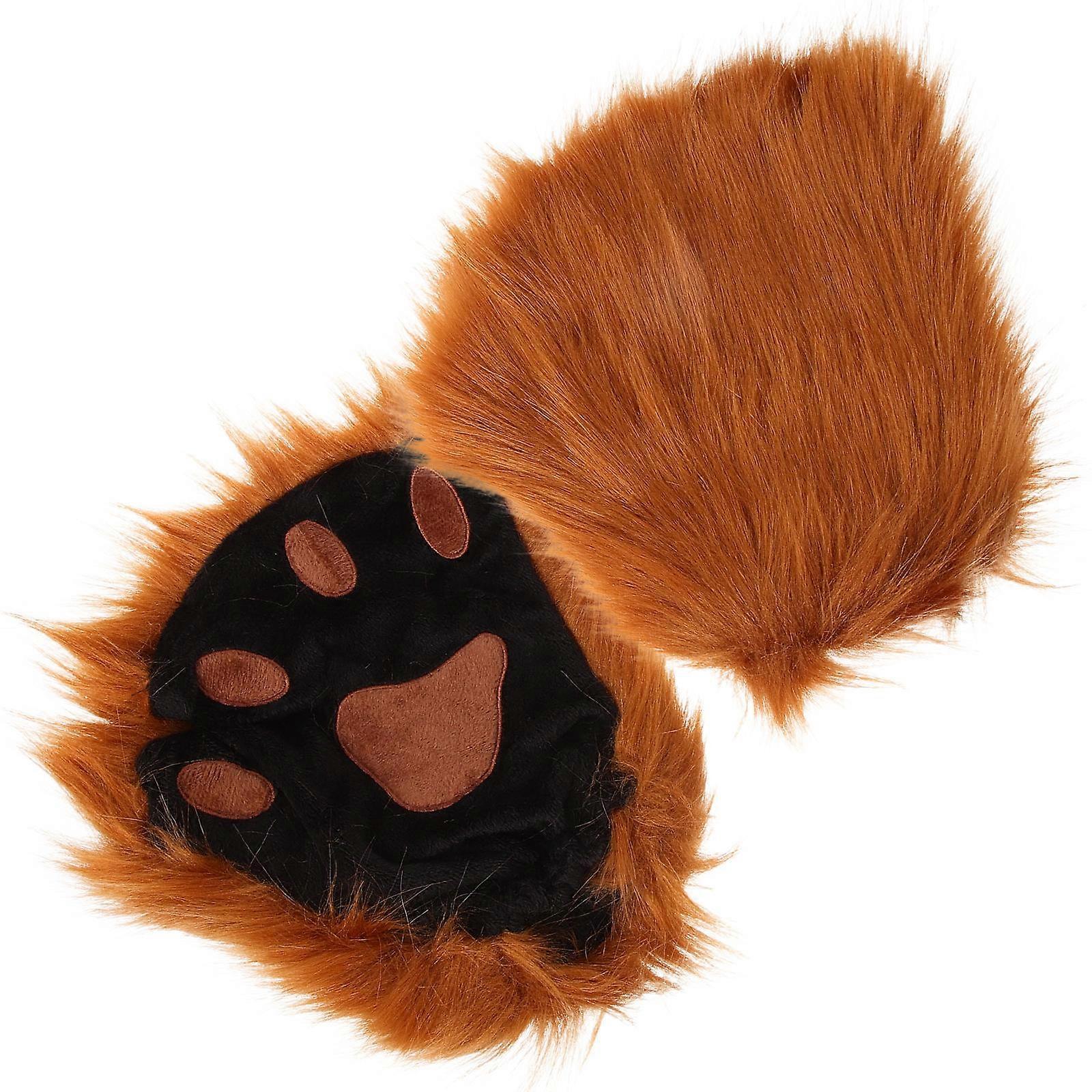Soft Plush Animal Paw Gloves for Women, Fingerless Cat Paw Mittens for Cosplay, Costume Parties and Performances