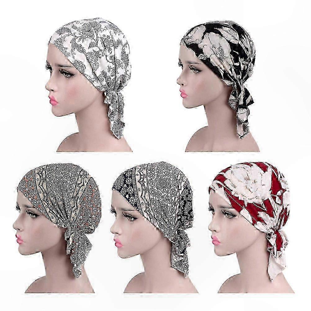 Soft Stretch Head Scarves for Women - 5 Pack Turban Style Chemo Caps for Comfortable Coverage