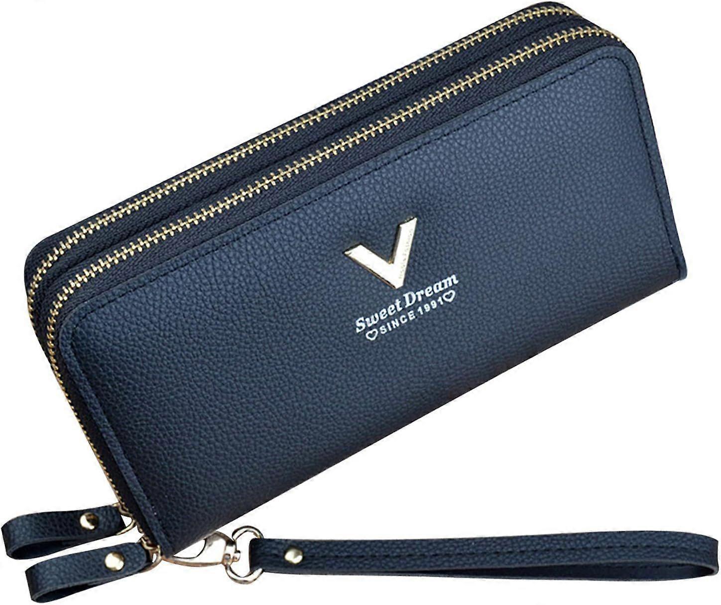 Women's Wallet with Double Zipper Purse PU Leather Phone Wallet for Woman