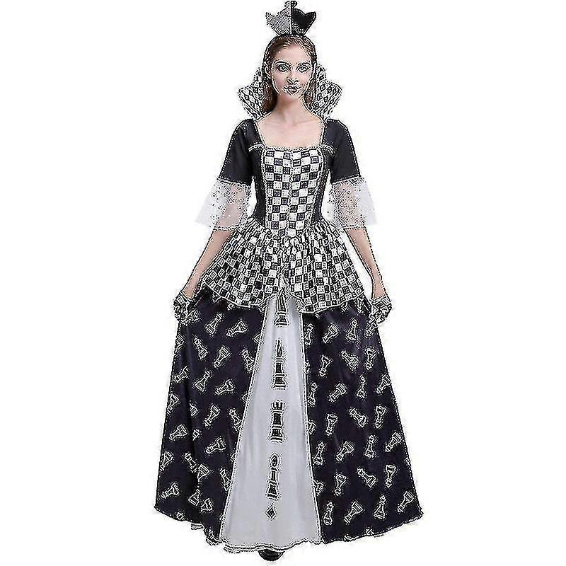 Chess Queen Costume For Women Halloween Party Fancy Dress Chess Piece Print