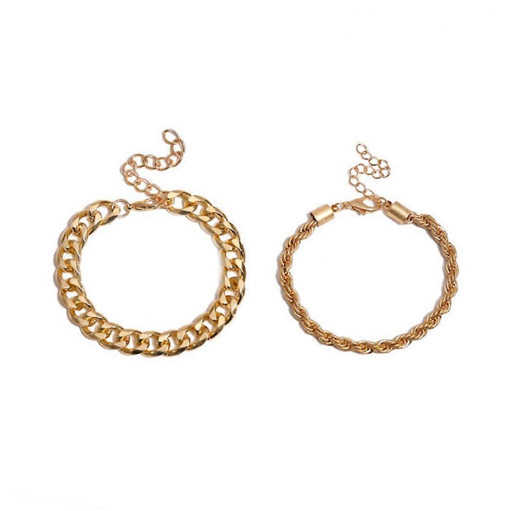 Charm Chain Bracelets Set for Women Gold Link Chunky Bracelet Chain Italian Dainty Jewelry Chain Bracelet Hand for Women and Girls 2PCS (Gold)