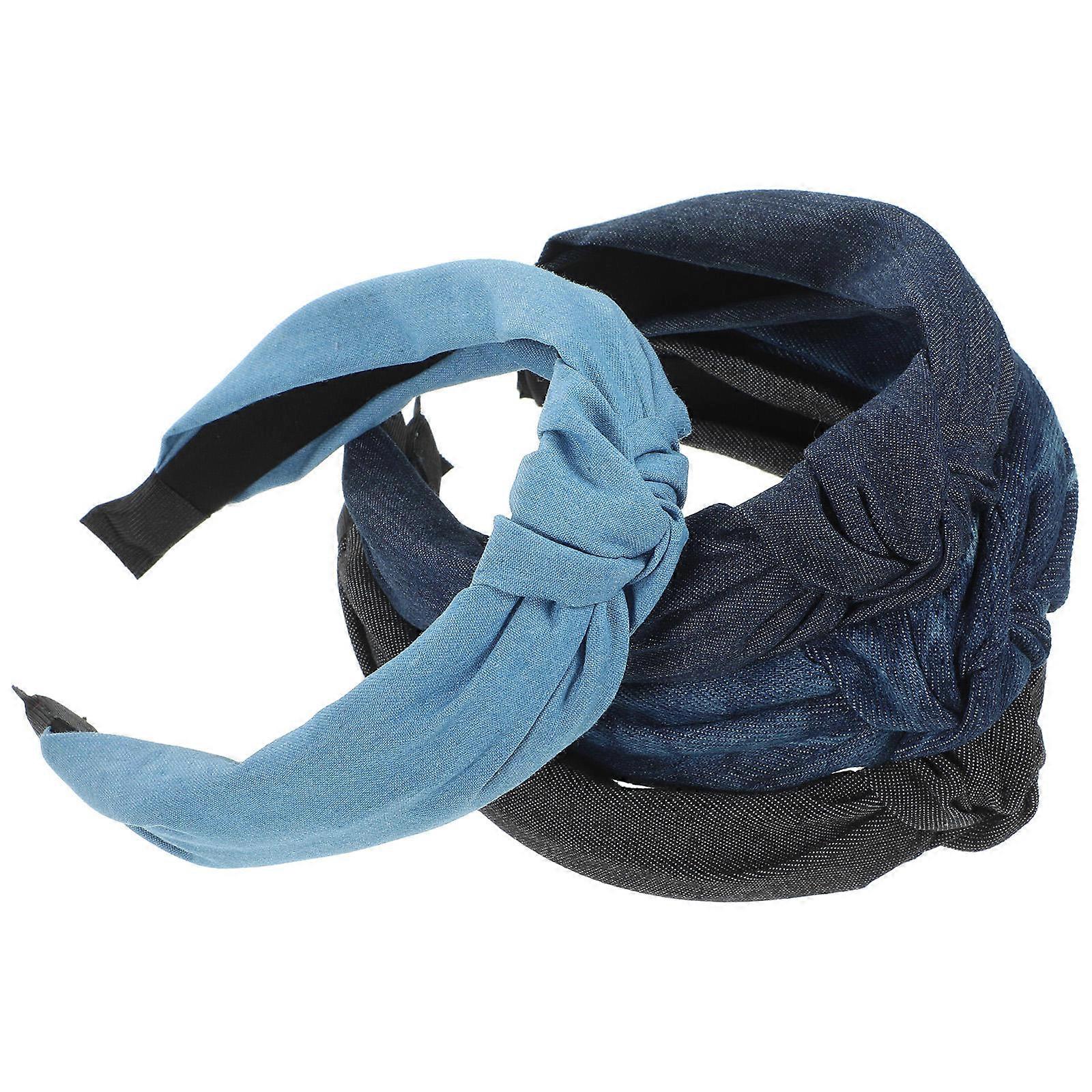 4pcs Denim Knot Headbands for Women Teens Wide Elegant Hair Bands in Black, Dark Blue, Light Blue Stylish Accessories for Daily Wear & Outdoor