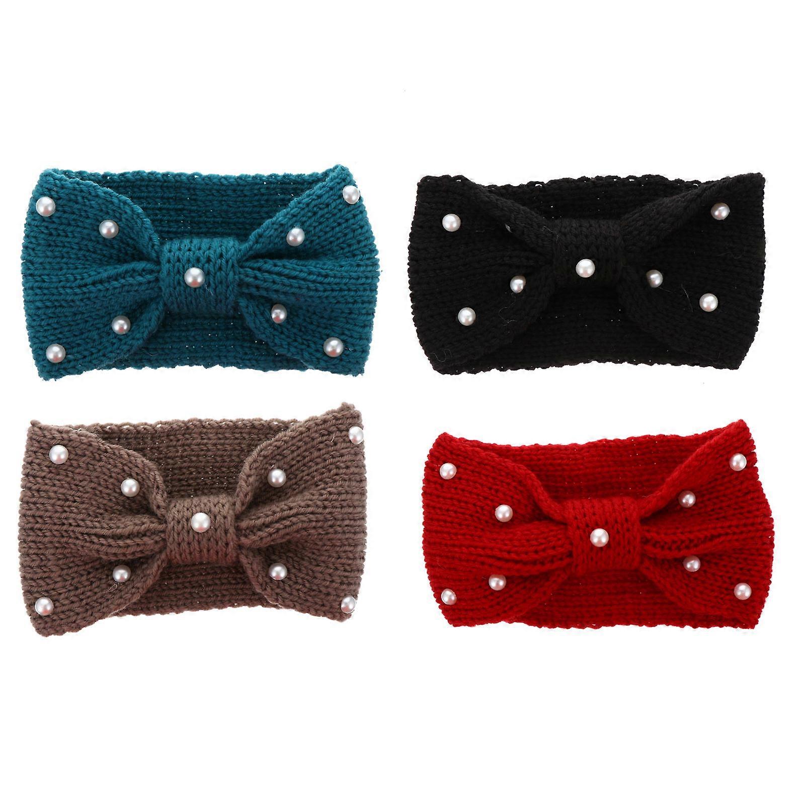 4pcs Knitted Headbands for Women – Bow Knot Design, Warm Winter Hair Accessories for Outdoor Activities, Stretchy and Comfortable – Includes Black,