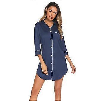 Women's Nightgown Button Down Sleepshirt Satin 3/4 Sleeve Nightshirt Boyfriend Sleepwear SENZHE