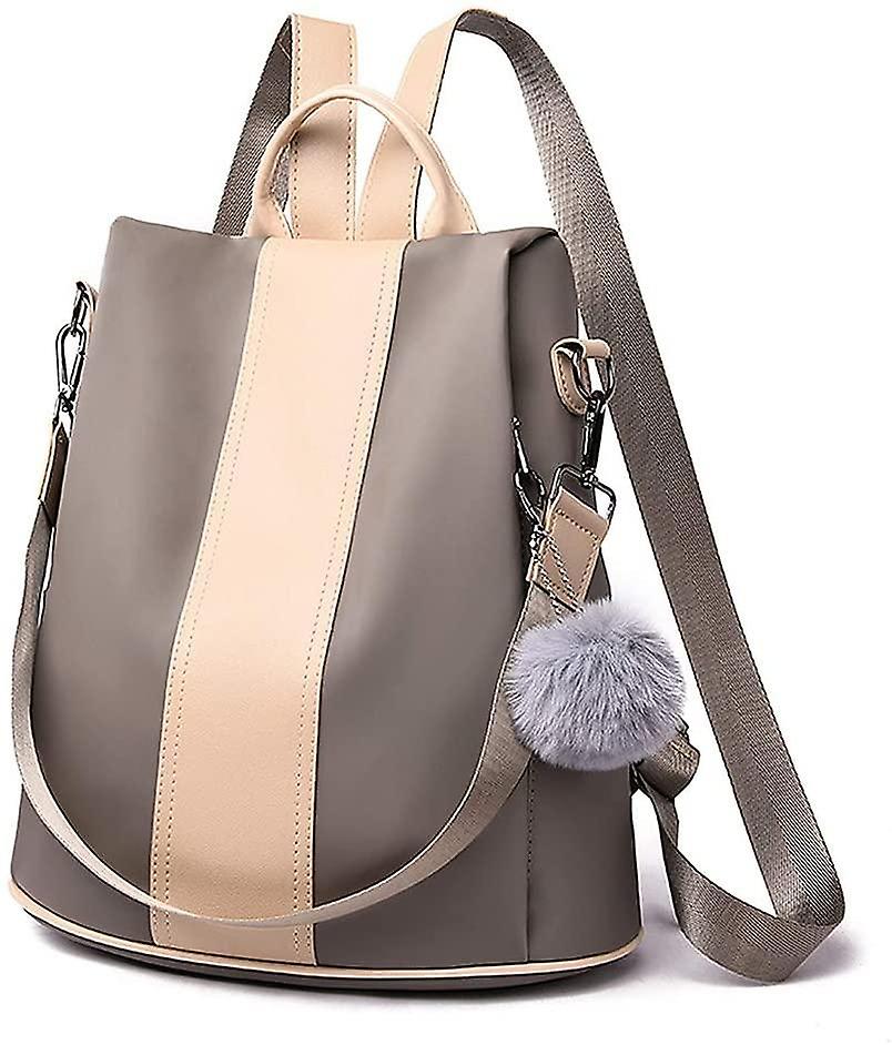 Waterproof nylon school bags: women's backpack waterproof is made of faux leather and tear-resistant, waterproof, abrasion-resistant nylon, do not worry about the items in the bag that they get wet on rainy days. Large capacity: Women's daypack shoulder bag has 1 main zip compartment with 1 inner zip pocket and 2 inner pockets, 2 side pockets, 2 front zip pockets. Multi pockets for your iPad Pro, mobile phone, umbrella, water bottle, house keys and other small items. Adjustable strap: with adjustable straps, you can wear it as a single shoulder bag or backpack, as there is a removable short shoulder strap. Please note: the decorative pom is not a real fur. Anti-theft backpack: anti-theft daypack has rear zip and effective anti-theft design, so it provides a safe environment for your items. Multifunctional backpack: you can use it as casual daypacks, backpack, shoulder bag, handbag, perfect for office, school, dating, travel or other daily occasions. Specifications: Weight: 600 g. Dimensions: 34 x 16 x 36 cm Material: Nylon & Faux Leather Features: Anti-theft design Removable strap Structure: 1 x main compartment 1 x document bag 1 x mobile phone case 1 x Inner zip pocket on the back 2 x outer side pockets 2 x outer zip pocket on the front Box contents: 1 x women's backpack