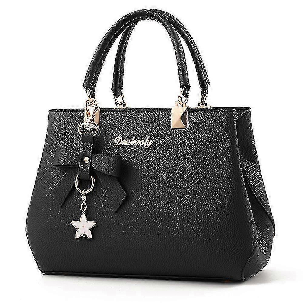 Black Leather Crossbody Bag for Women: Tote Shoulder Purse Bag
