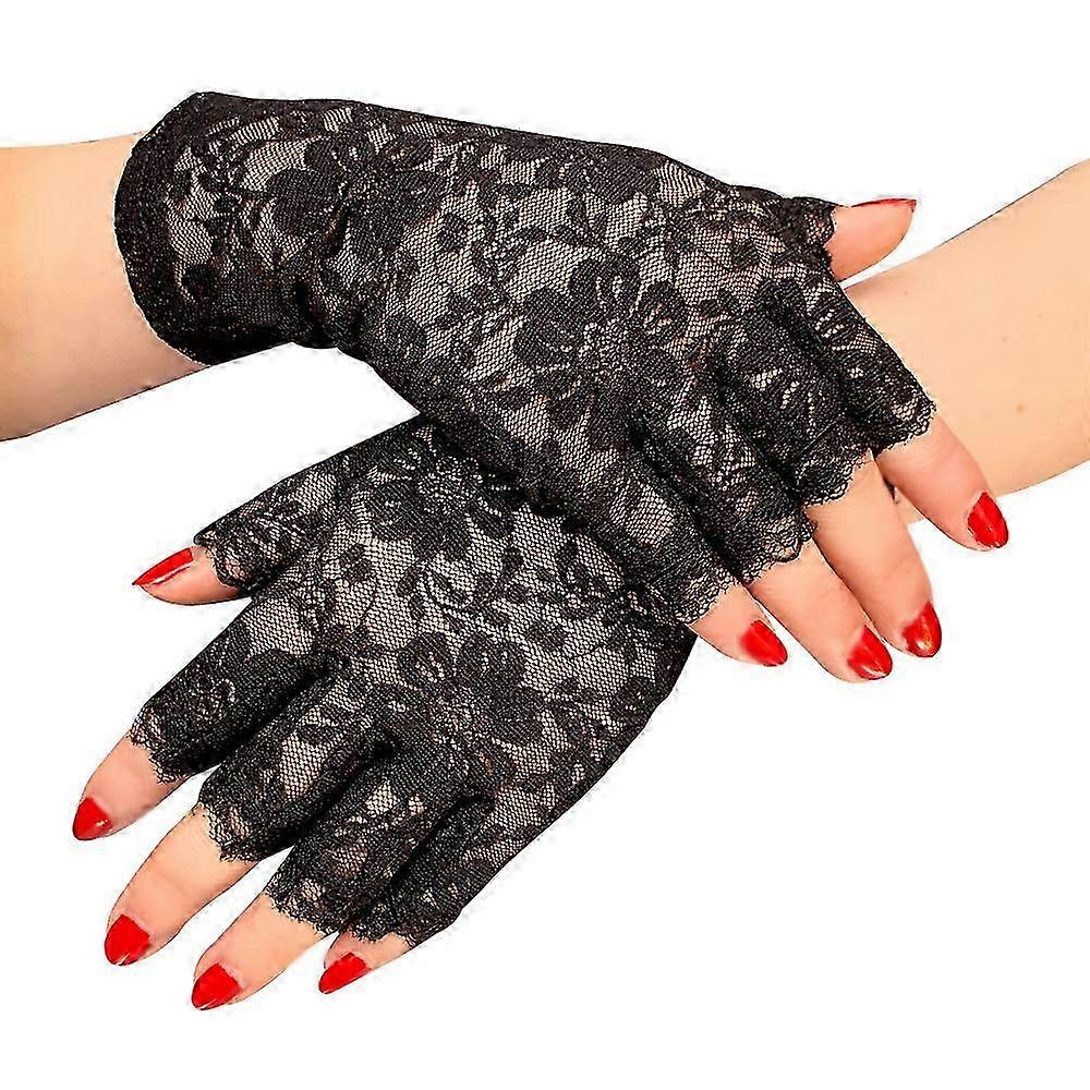 Black Lace Gloves for Ladies, Half Finger UV Protection Fancy Dress