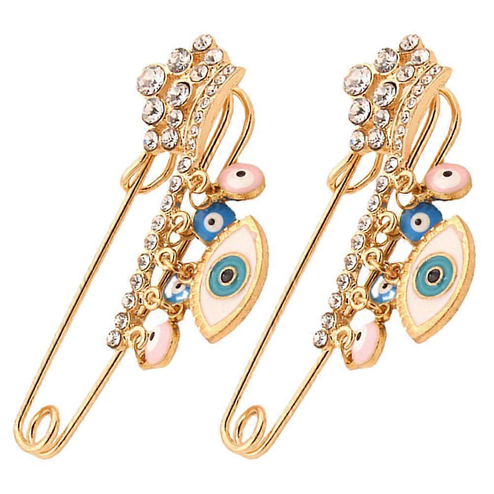 Brooch For Women Evil Eye Clip Charm Dangle Chain Lapel Pin Gold Round 2Pcs