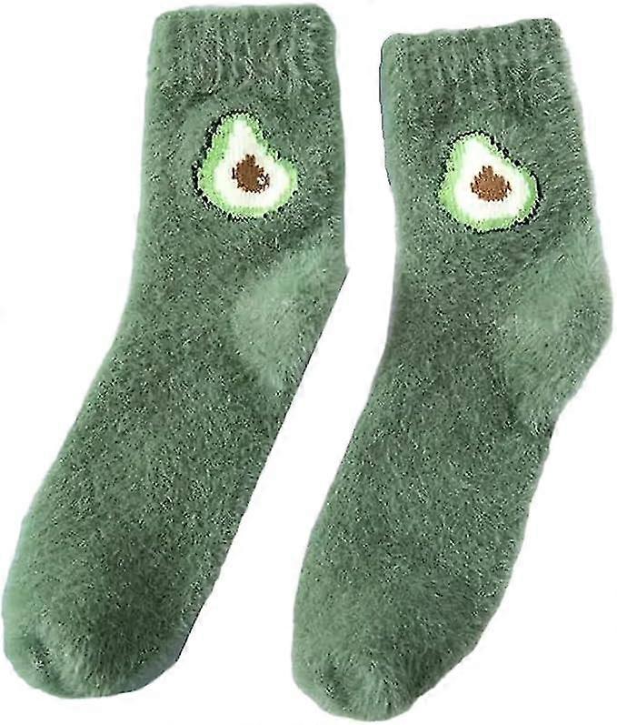 Women's Fuzzy Fruit Socks 5 Pairs/lot Avocado Cherry Coral Floor Slipper Socks - q36/YY