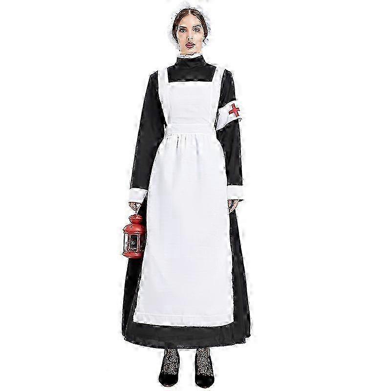 Women's Florence Nightingale Costume Adult Nurse Dress with Apron, Bonnet, and Arm Band Halloween Historical Nurse Costume
