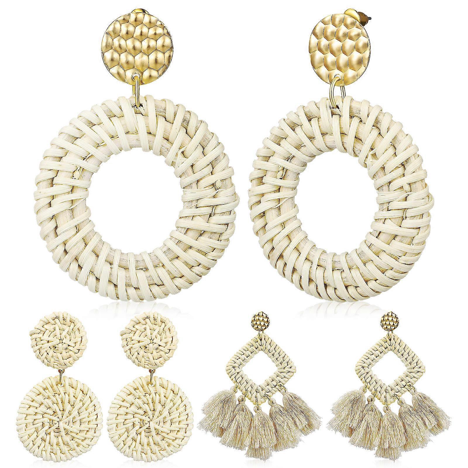 Here's a polished and engaging product description for your **3 Pairs Bohemian Rattan Earrings Woven Straw Jewelry for Women**: ✨ **3 Pairs