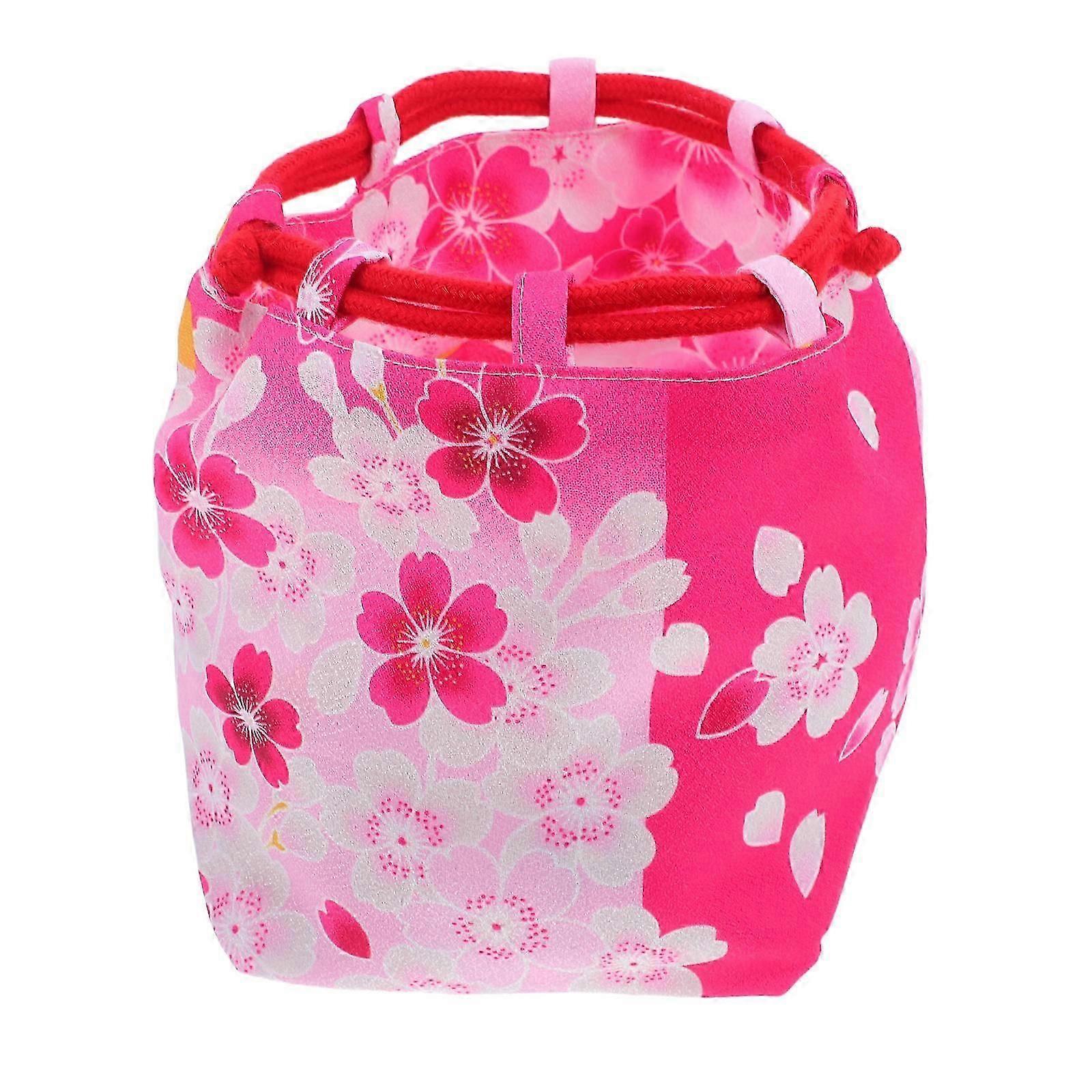 Portable Drawstring Bag for Women Cosmetic Bag Coin Purse Outings Rosy Color 1Set
