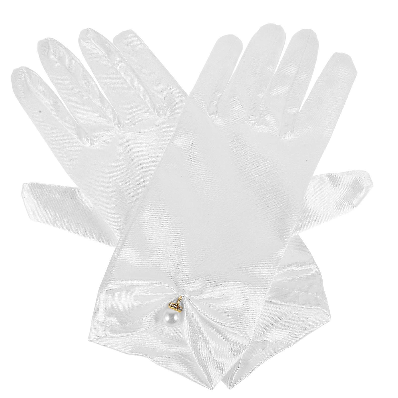 White Satin Pearl Bridal Gloves for Women – Elegant Wrist Gloves for Weddings, Evening Parties, and Outdoor Photography