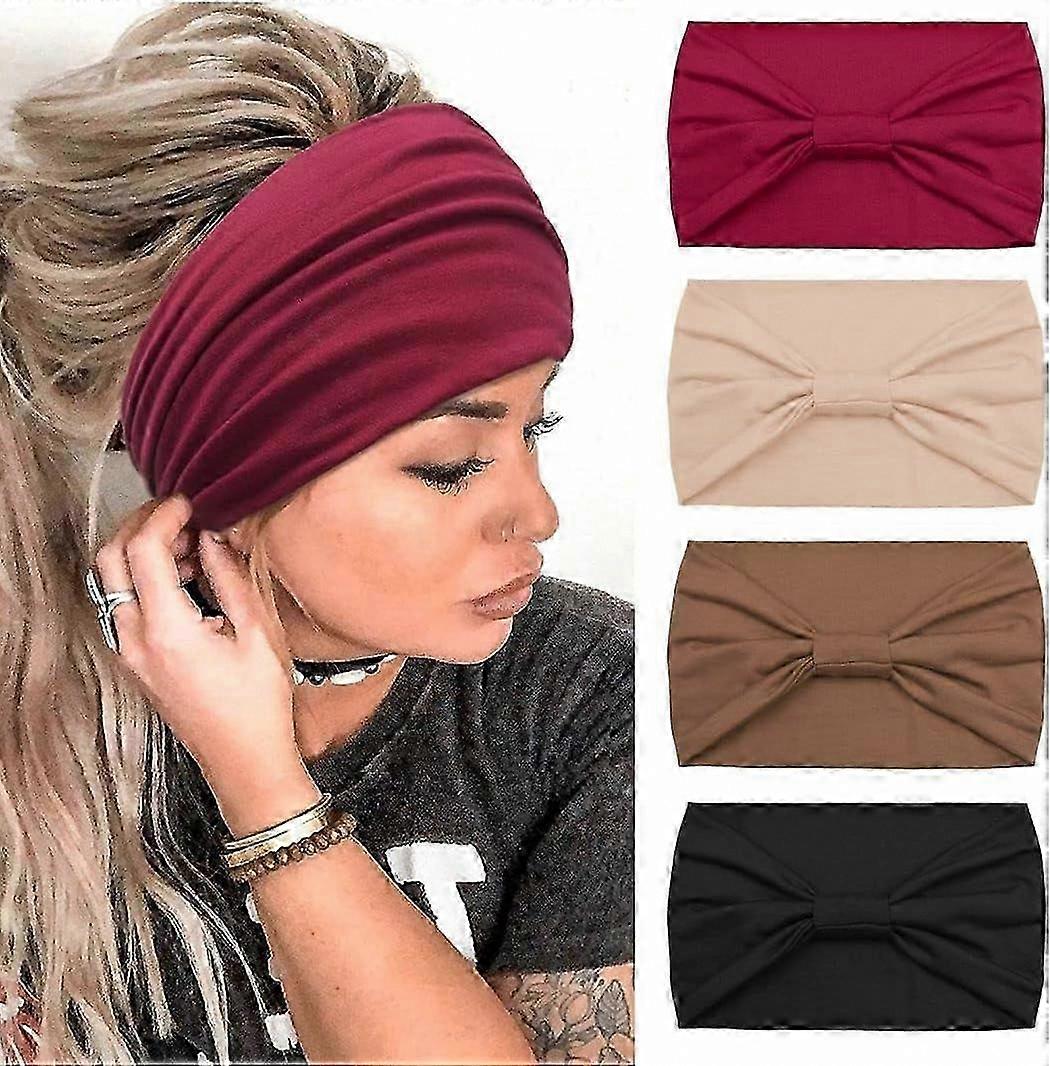 Multicolor Wide Elastic Boho Headbands for Women Leopard Print Soft Yoga Sport Hairbands Pack of 4
