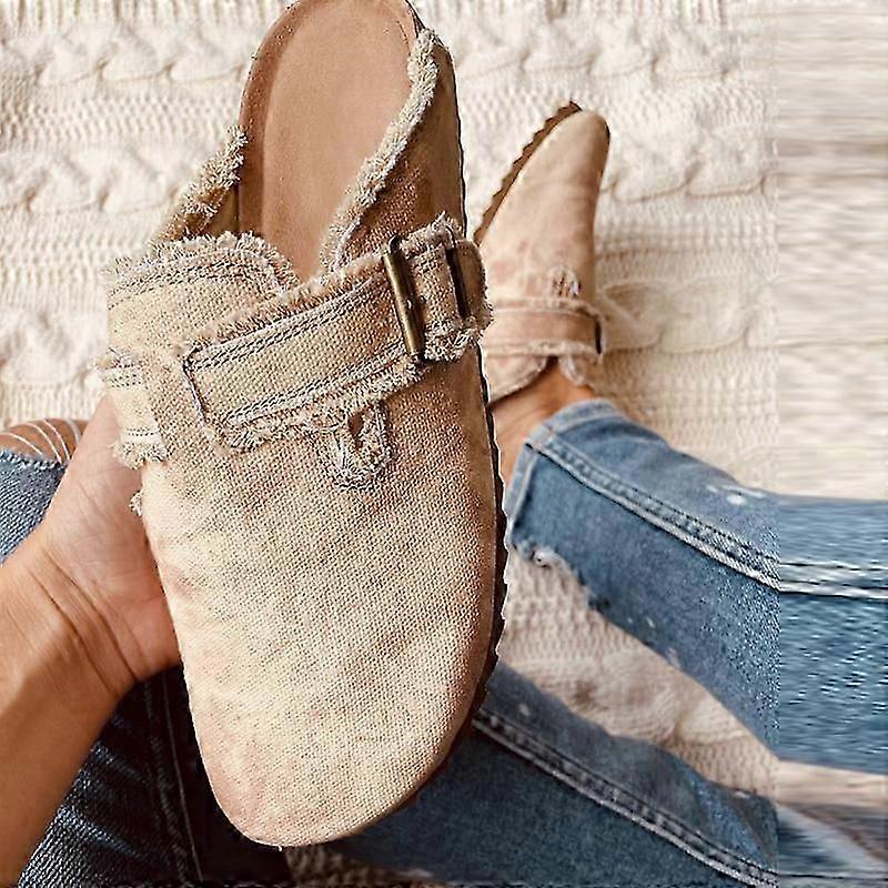 Women's Mules Casual Flats Shoes with Buckle Design Fashion Printing for Summer
