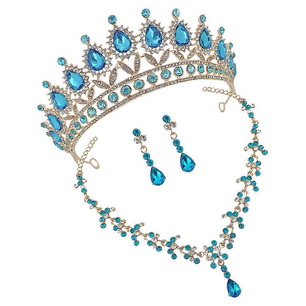 Rhinestone Crown for Women Bridal Tiara and Necklace with Earrings 4Sets