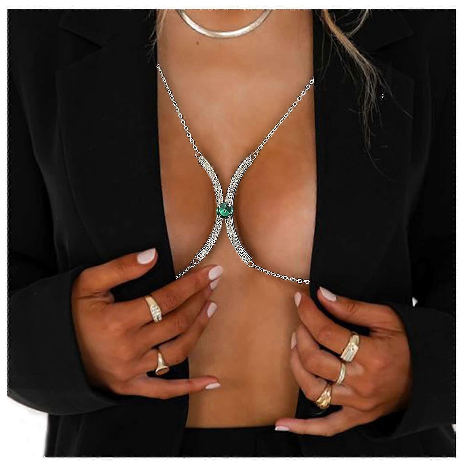 Women's Rhinestone Encrusted Chest Chain Bikini Lingerie Body Jewelry