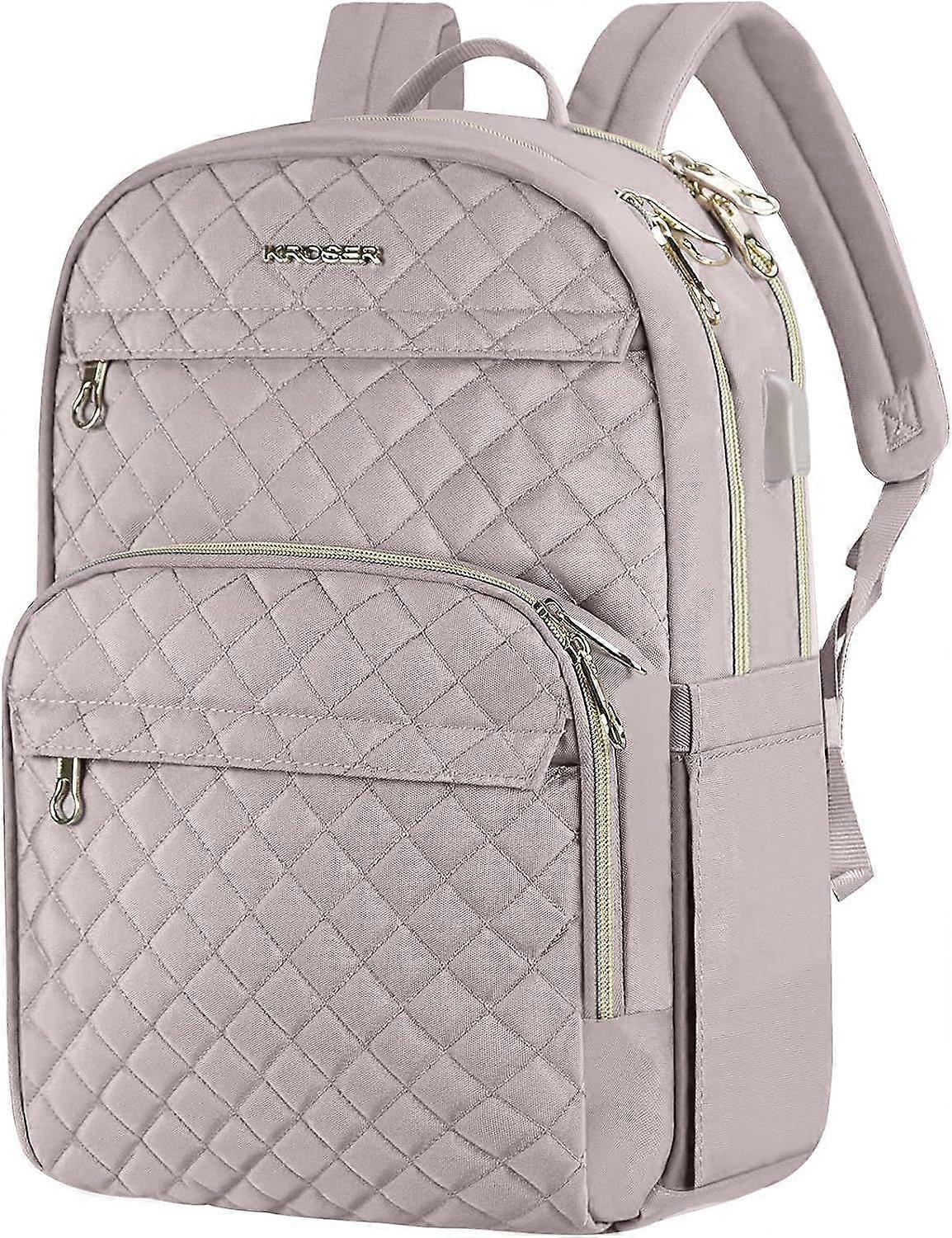 Laptop Backpack for Women 15.6 Inch Stylish Daypack with USB Charging Port, Water-repellent Nylon Backpack for Travel/Business, Dusty Pink