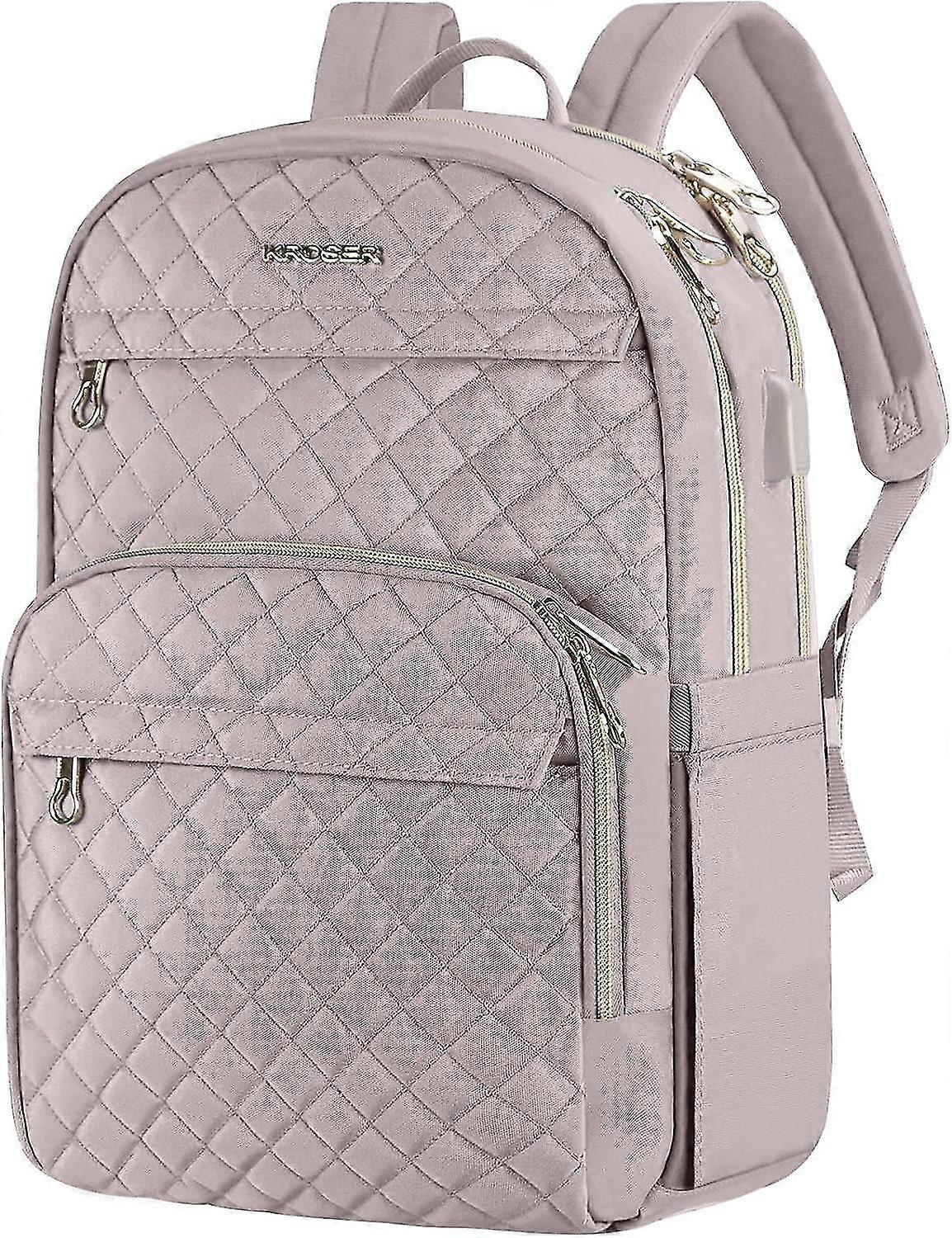 Laptop Backpack For Women 15.6 Inch Stylish Daypack With Usb Charging Port, Water-repellent Nylon Backpack For Travel/business, Dusty Pink