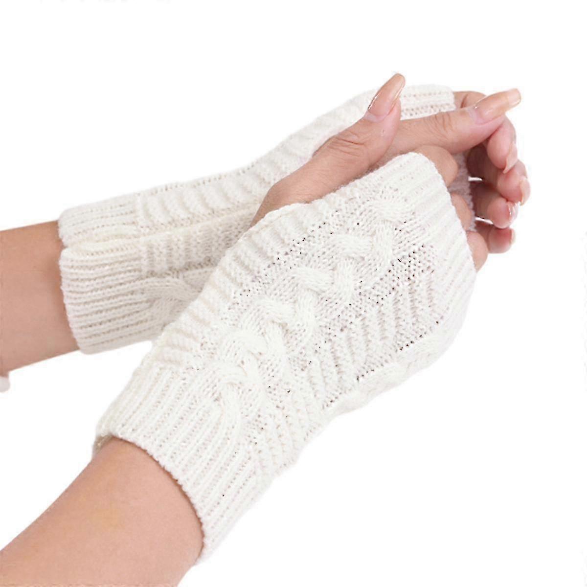 Women's Ribbed Wrist Arm Warmers Stretchy Cable Knitted Fingerless Gloves
