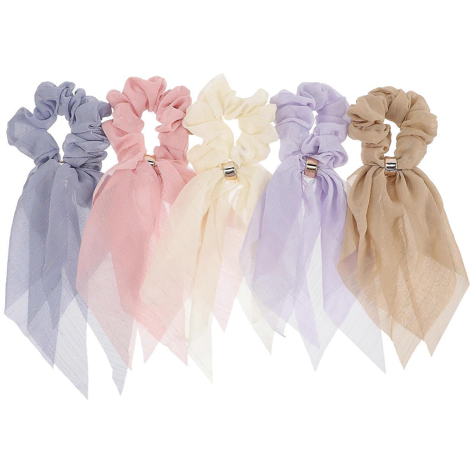 Fashionable Hair Ties Scrunchies With Ribbon For Women Girls Parties Caramel 5Pcs