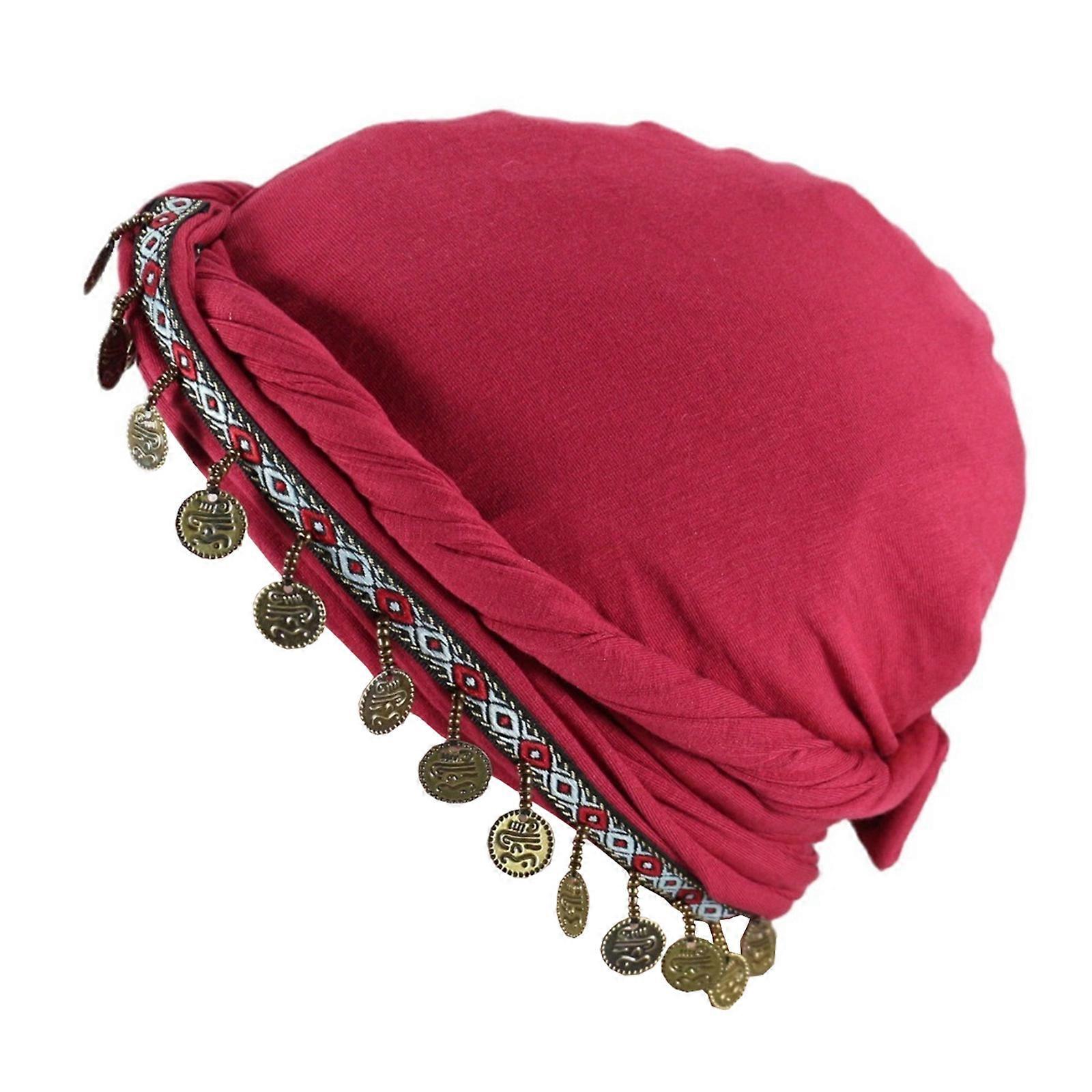 Embroidery Trim Twisted Tail Hat for Female Soft Stretchy Bandanas Hat Breathable Turban Hat Women Fashion Skull Hat Burgundy