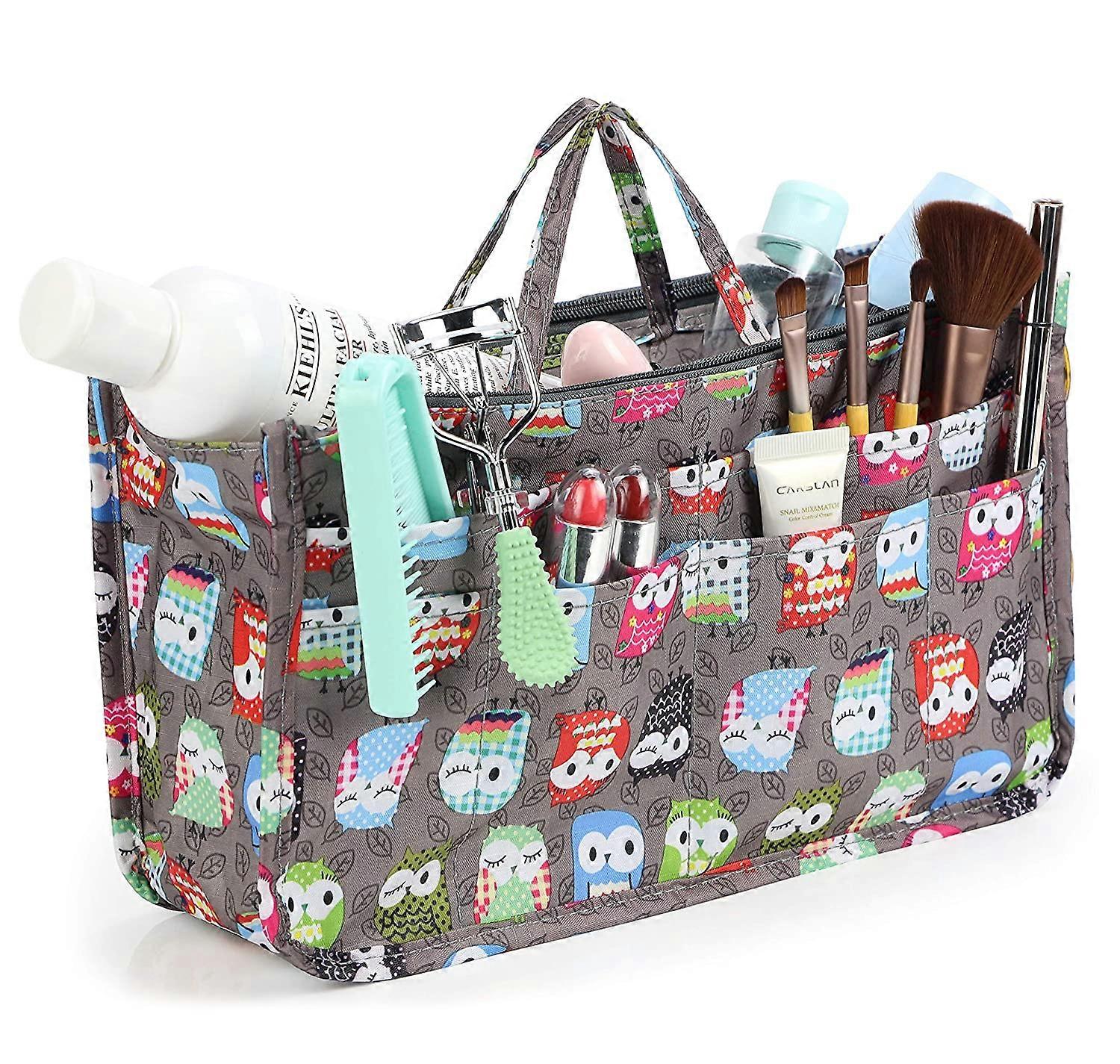 Cosmetic Bag for Women Cute Printing 14 Pockets Expandable Makeup Organizer Purse with Handles (Owl)