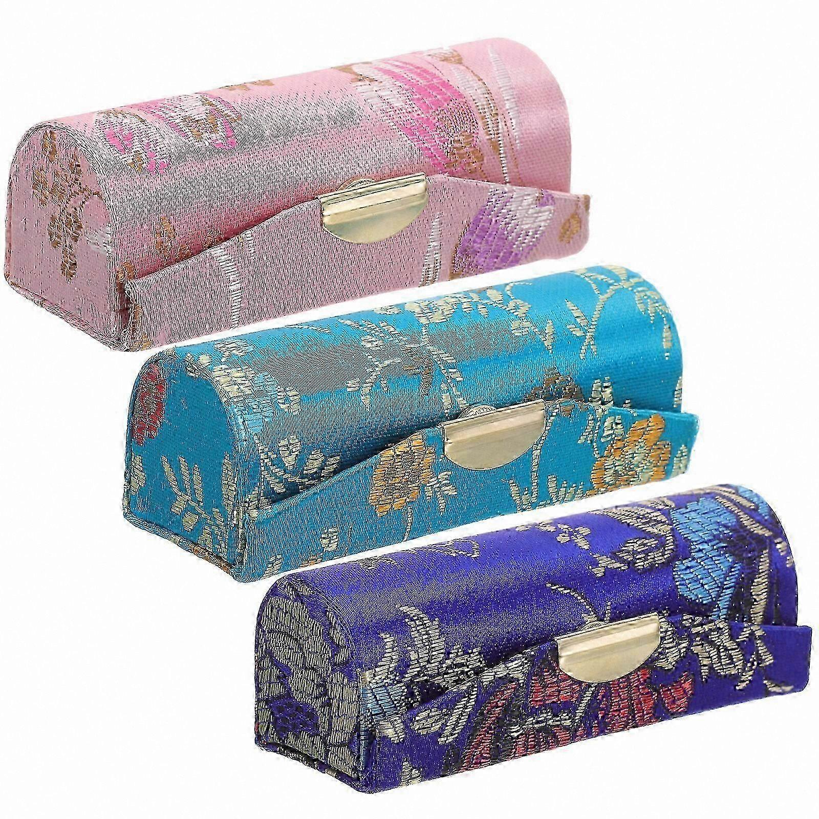 This practical lipstick case offers a satisfying user experience. The secure button design ensures the case stays firmly closed, keeping your lipstick from falling out. Portable and convenient, this case is perfect for storing lipstick, lip gloss, and other small essentials.Features: - Color: Random - Material: Plastic, metal, fabric - Size: 8.60 x 3.20 x 3.00 cm / 3.38 x 1.26 x 1.18 in - High-quality craftsmanship with attention to detail for a stylish and elegant look - Multi-functional design ideal for holding lipstick, keys, coins, and small accessories - Smooth and durable finish, easy to carry in handbags or crossbody bags - A thoughtful gift idea for women on birthdays, Christmas, New Year, holidays, and festivals Packing list: 3 x Lipstick cases