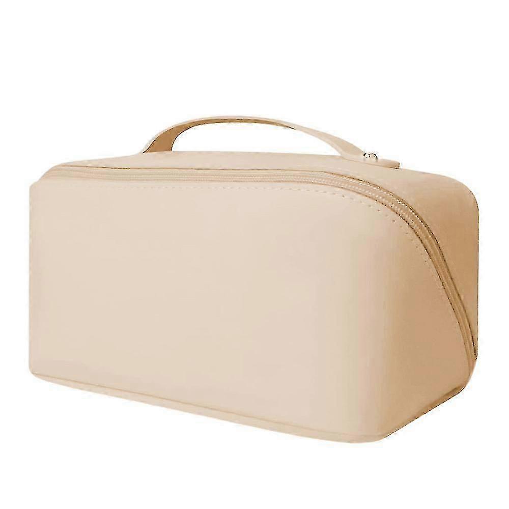 Large Capacity Travel Cosmetic Bag For Women, Opens Flat Makeup Bag Pu Leather Storage Bag, Solid Waterproof Multifunctional Toiletry Bag Skincare Bag