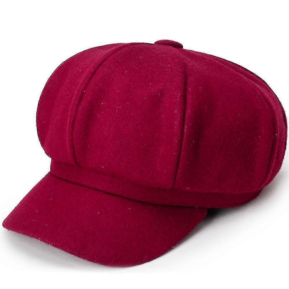 Women's Hat Beret Autumn And Winter Ladies' Octagonal Hat Painter's Capwine Red