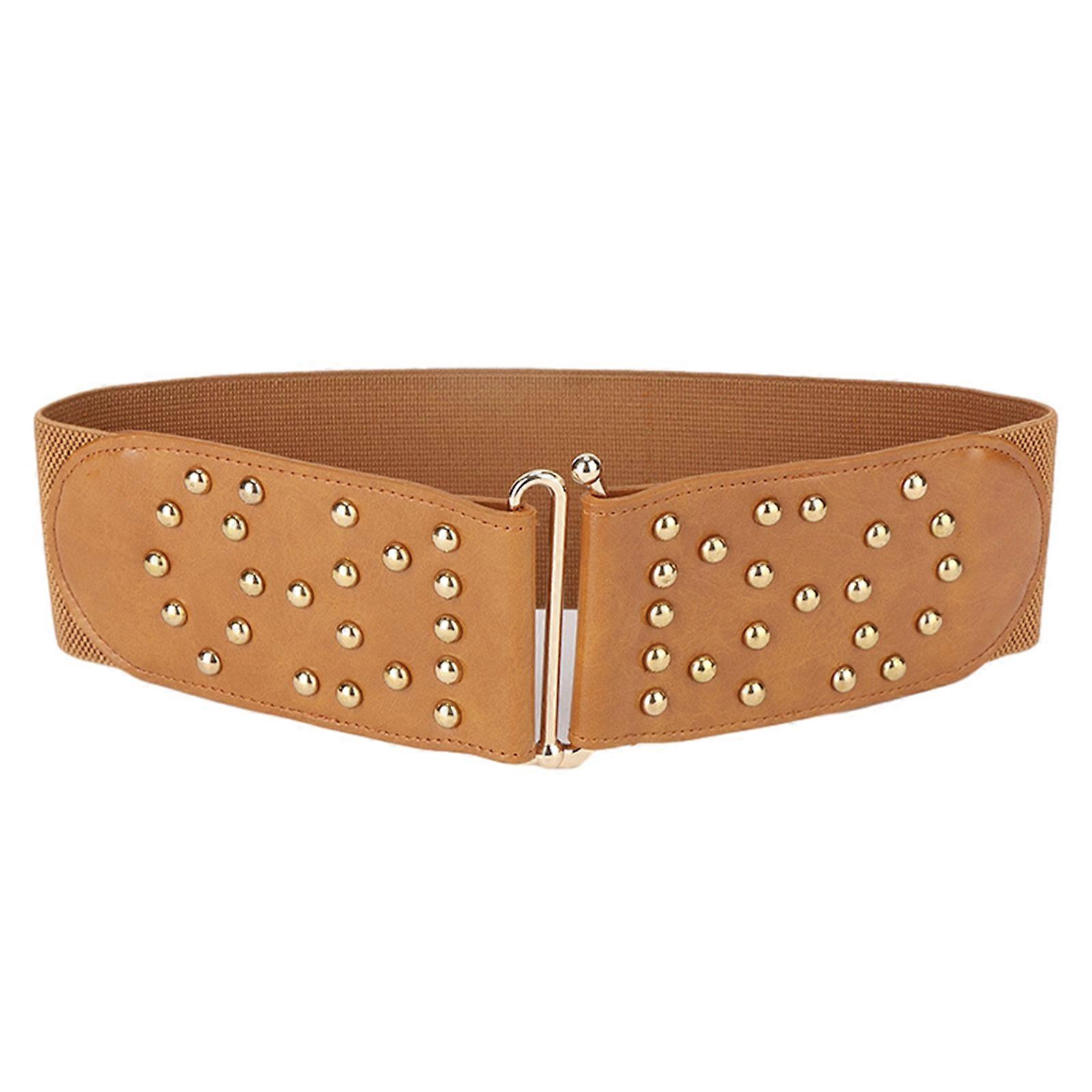 Elastic Waist Belt for Women Ladies Dress Corset Fashion Female Stretch Waist Strap with Alloy Rivet for Prom Party Camel