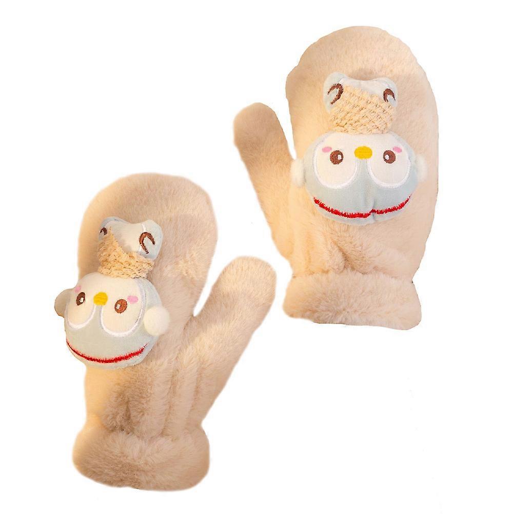 Warm Gloves Cartoon Winter Gloves for Women Beige Plush Moisture Absorption Full Finger Cover 1 Pair