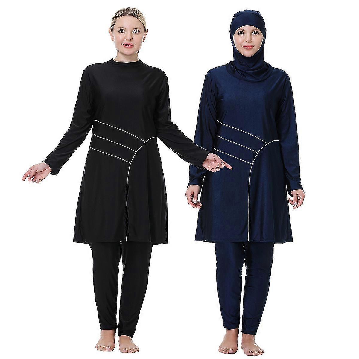 Women Swimming Suit 3xl-8xl Patchwork Muslim Full Cover Tankinis 3pcs Hijab Long Sleeves Sport Swimwear Islamic Burkinis Wear