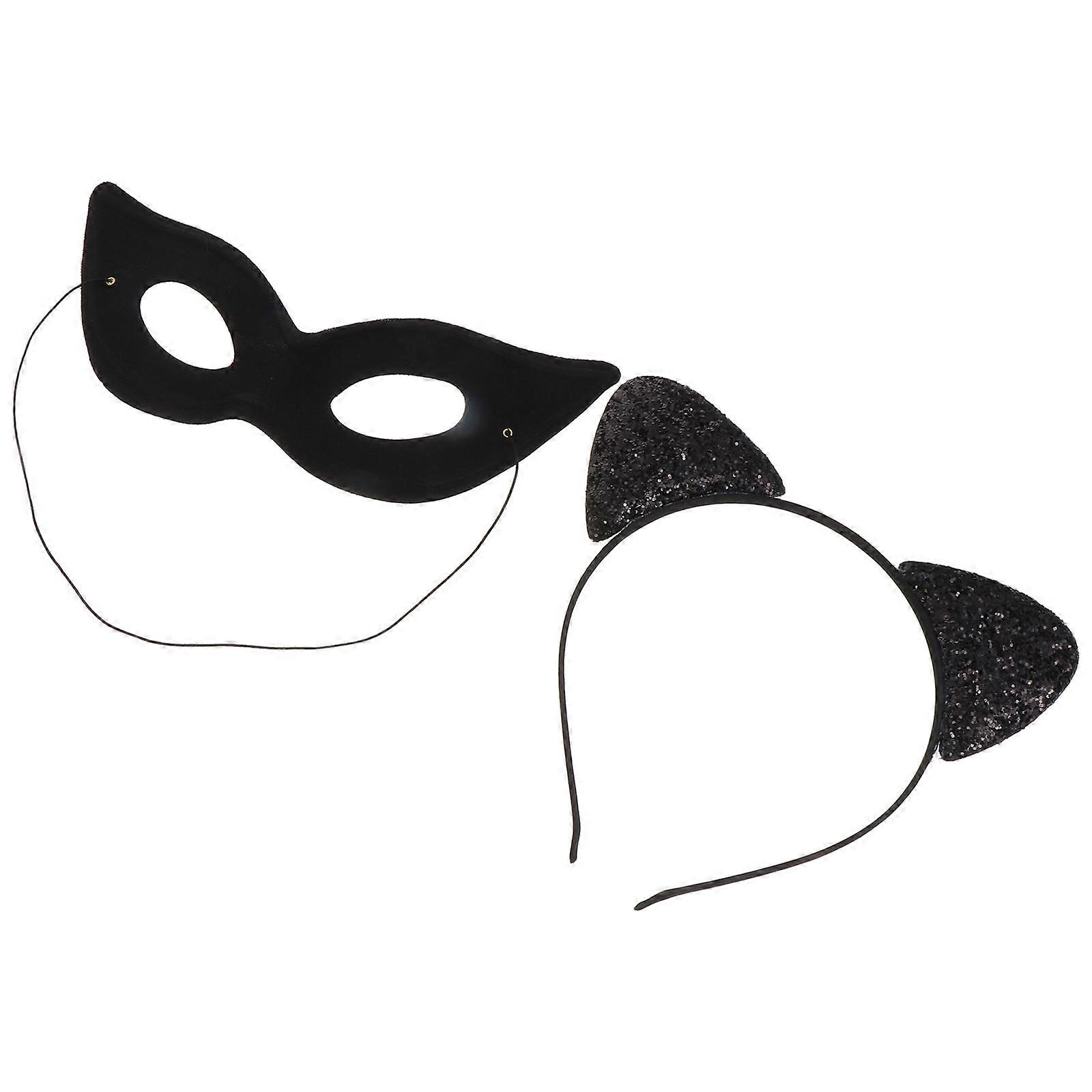 Cat Ears Headband and Eye Mask Set for Women – Lightweight Festival Headdress, Comfortable Breathable Party Costume Accessory for Female Cat Ear Hair