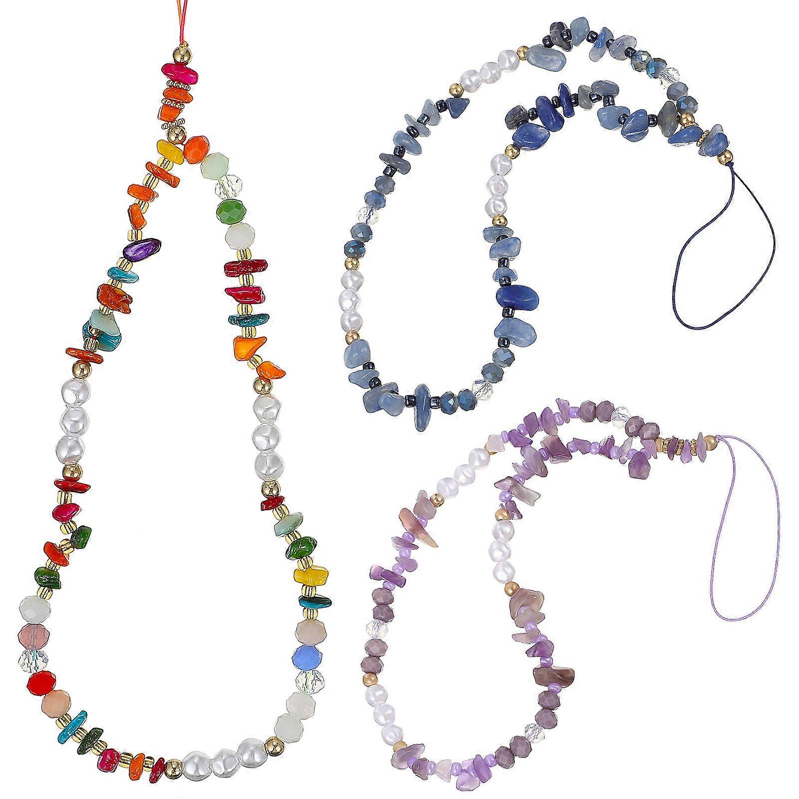 3pcs Beaded Phone Charm Straps with Stones and Artificial Pearls for Women – Decorative Mobile Lanyards and Wrist Bracelets