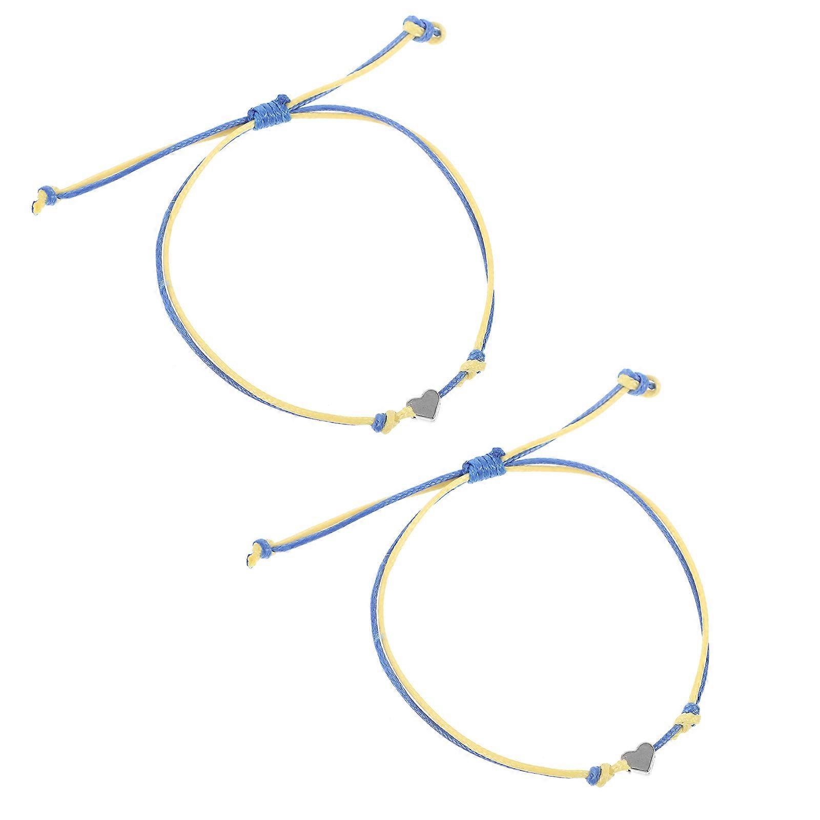 Woven Heart Charm Bracelet for Women Adjustable Woven Rope Bracelet Multi Color 2 Pieces
