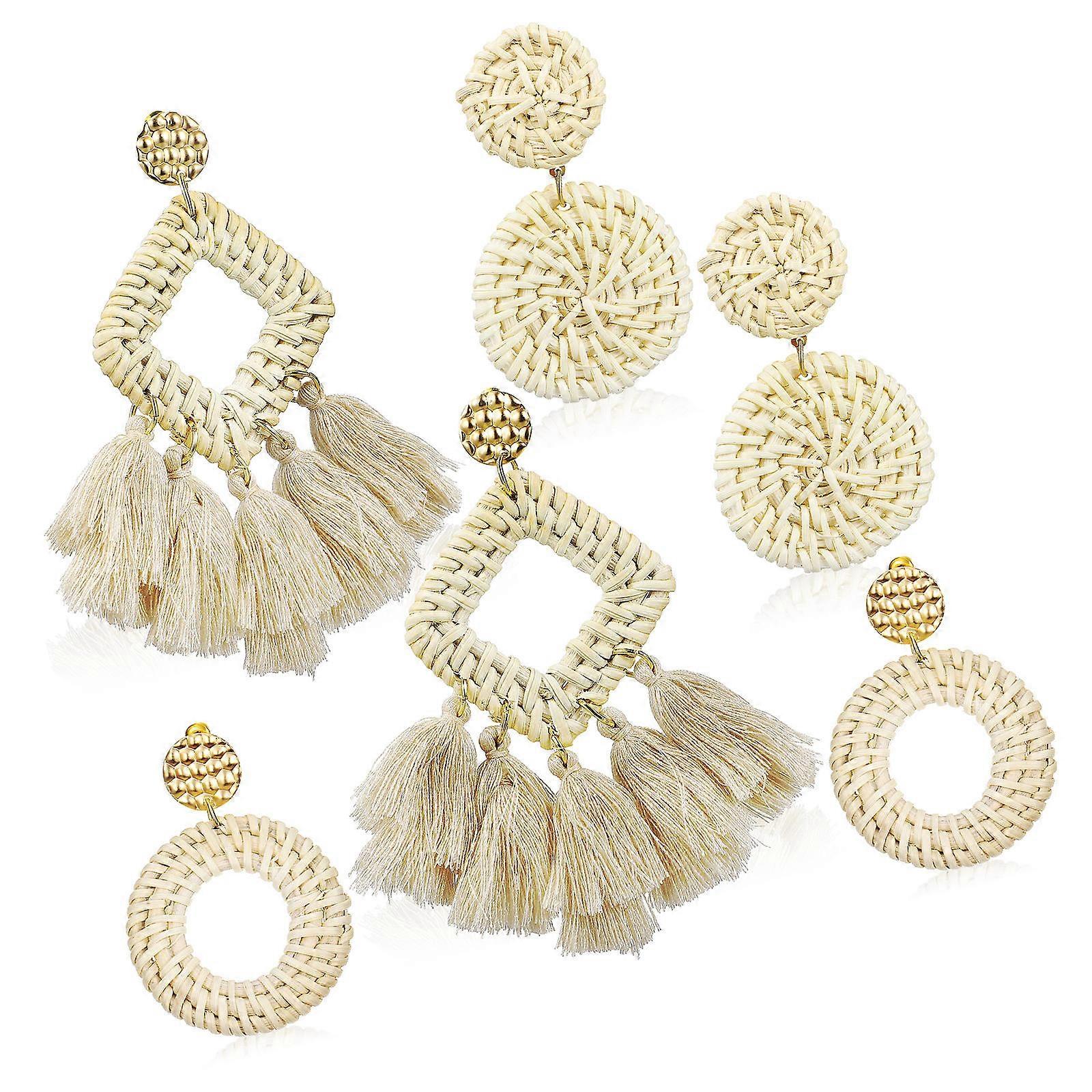 Woven Bohemian Drop Earrings for Women Lightweight and Comfortable to Wear Assorted Color 3 Pairs
