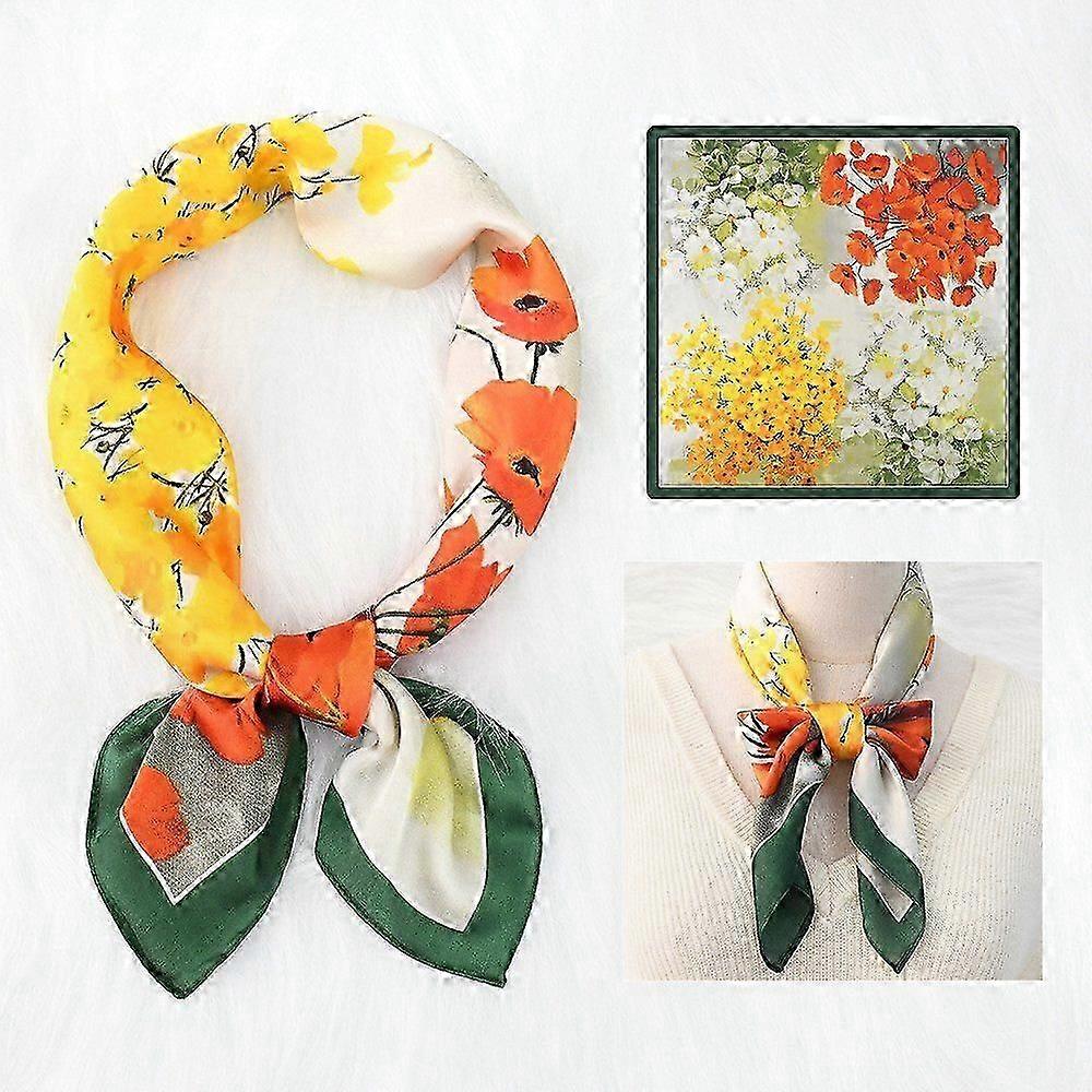 Floral Pattern Silk Scarf for Women, Multifunctional Headwrap Accessory