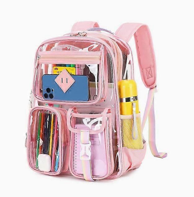 Description This transparent backpack is designed with durable PVC material, making it for outdoor activities, gym sessions, and sports events. The clear design allows for easy visibility of your belongings, ensuring you can quickly find what you need. Its ergonomic shoulder straps provide comfort, making it suitable for daily use. Features -Color:Transparent -Material:PVC -Size: 38.50X29.00X10.50cm/15.13X11.40X4.13in -Transparent design: the clear pvc material offers a stylish and versatile look, allowing you to showcase your personality and become the fashion focus on the streets -Comfortable fit: the dualshoulder design conforms to the human body curve, reducing the burden and providing comfort during outdoor activities -Spacious capacity: with a large internal space, this backpack easily accommodates various items, meeting all your needs during sports activities -Transparent backpack: made from materials, it effectively protects the contents, ensuring peace of mind while traveling -Versatile use: this transparent backpack is not only suitable for outdoor sports but also for fitness, travel, and various other scenarios, catering to your diverse needsPackage list: 1 x transparent backpack