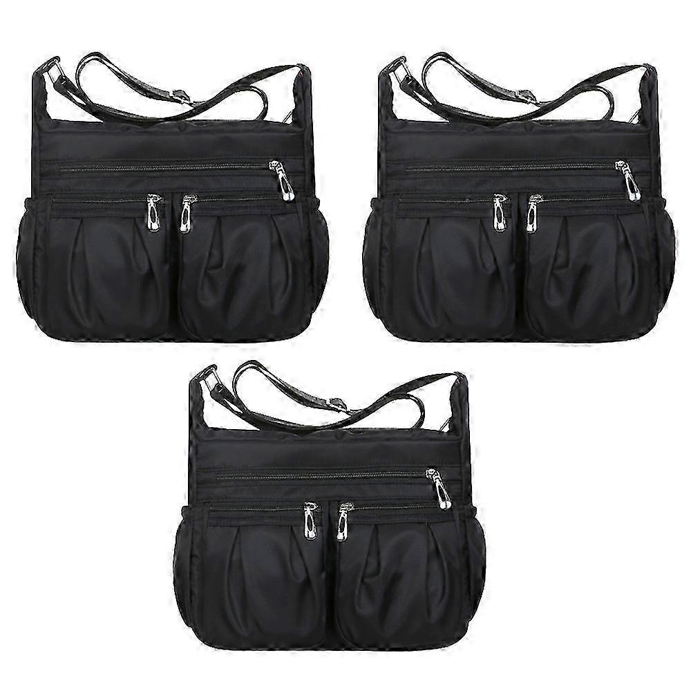 Women's Waterproof Nylon Crossbody Bag - Lightweight Large Capacity Shoulder Bag - Black