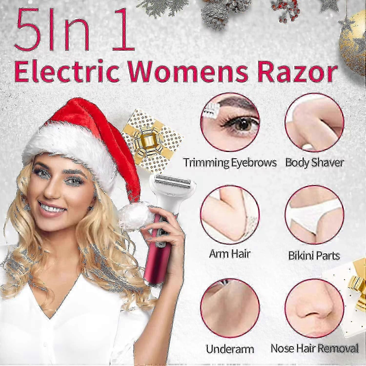 Electric Razor For Women,5 In 1 Womens Shaver Electric Bikini Trimmer Pubic Hair Removal Wet Dry Painless Shaver For Legs Underarms Eyebrow Face Nos F