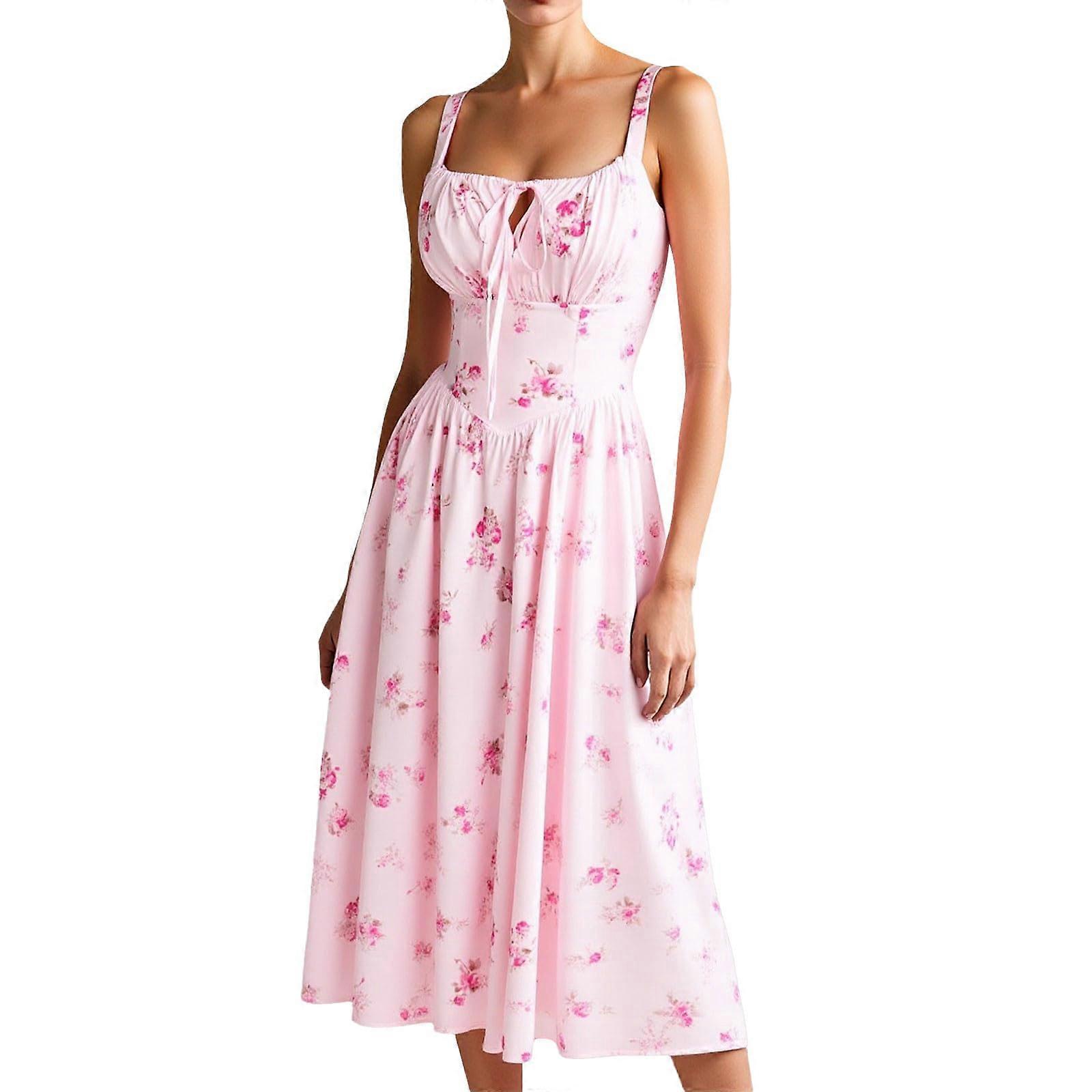 Women's Casual Dresses for Everyday, Elegant, with VNeck, Lacing, Long Dress with Lace Accents, Ideal for Summer, Spring Light Pink L